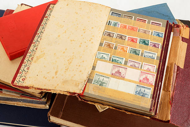 very old philatelic stamp collection albums