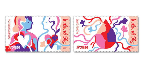 7. november utgis to frimerker med temaene blodgivning og organdonasjon. Med denne utgivelsen ønsker man å fremheve kritiske områder innen helsesektoren. Vi er helt avhengige av både blodgivere og organdonatorer skal helsevesenet fungere. Frimerkene er designet av Sandra Blikås.