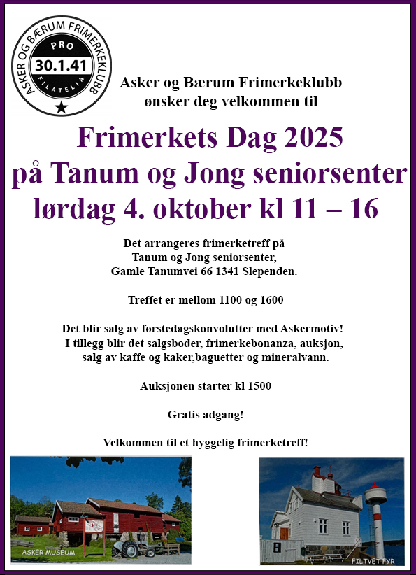 «Asker og Bærum Frimerkeklubb ønsker deg velkommen til  Frimerkets Dag 2025