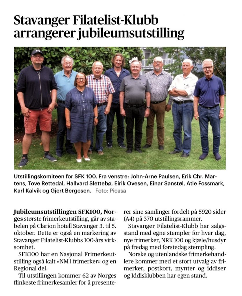 30. september 2025 NYHET Stavanger Filatelistklubb er 100 år og har stor utstilling Artikkel i Stavanger Aftenblad 0